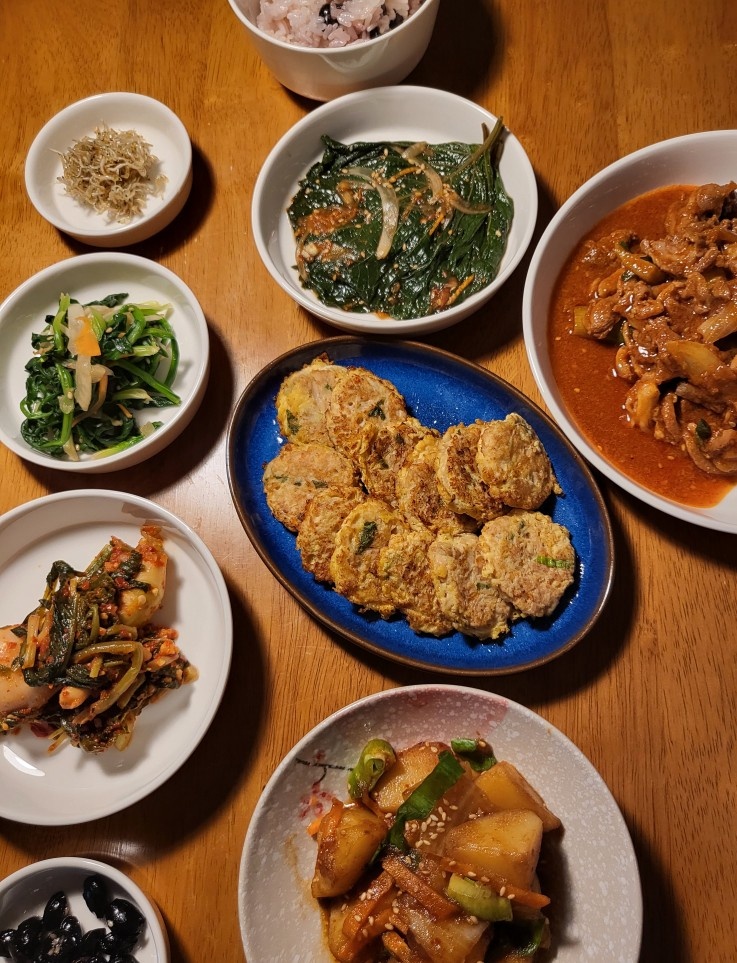냉장고에 있는 재료로 우리 부부가 먹고 싶어하는 다양한 밑반찬도 만들어주셨습니다.