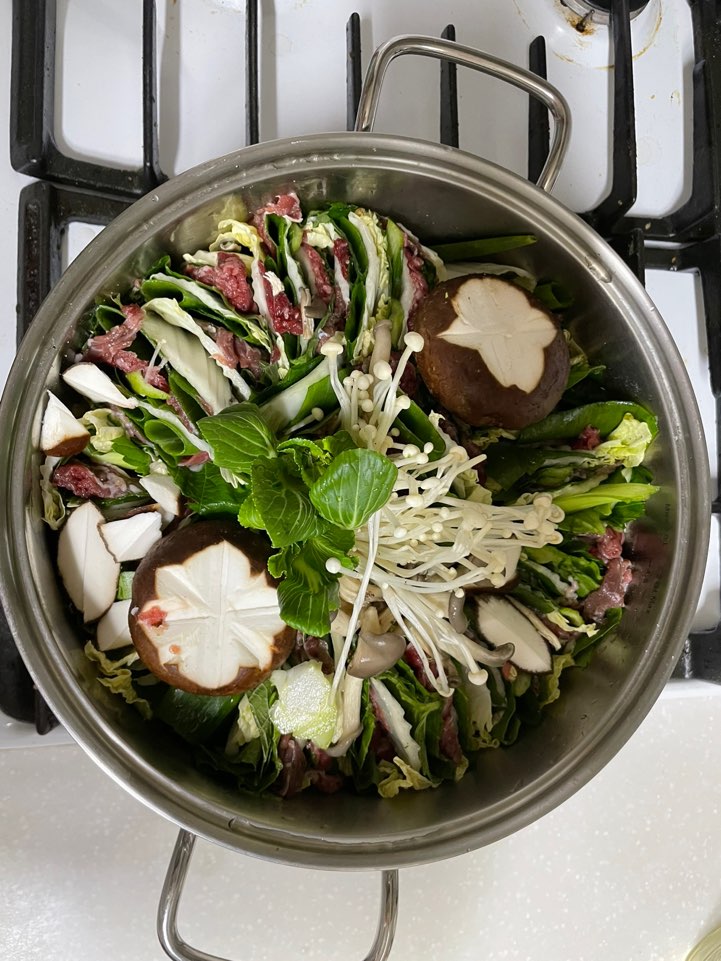 음식 만들어주시는 것도 만들기 쉬운 거 말고 먹고싶은 거 이야기 하라고 하셔서 소고기 채소말이, 밀푀유나베, 소고기뭇국 등등